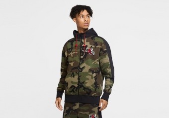 NIKE AIR JORDAN JUMPMAN CLASSICS CAMO FLEECE FULL-ZIP HOODIE MEDIUM OLIVE